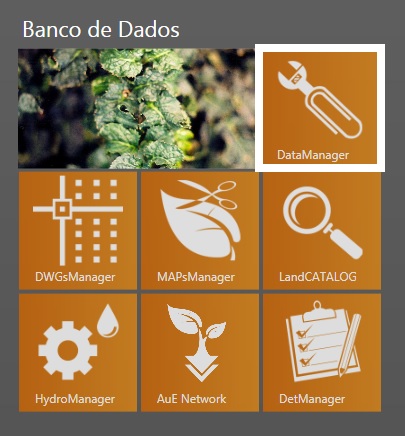 Vamos partir da inclusão de um item novo, que precisará da criação e preenchimento de uma nova ficha. Então, vamos abrir o sistema AuE Paisagismo e vamos clicar no programa DataManager.