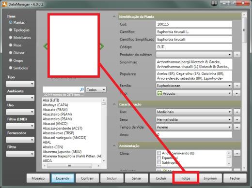 No canto superior esquerdo da tela existe um retângulo que mostra a foto de identificação do item selecionado. Para incluir a foto para o novo item que está sendo incluído, clique no botão Fotos que fica na parte inferior da tela.