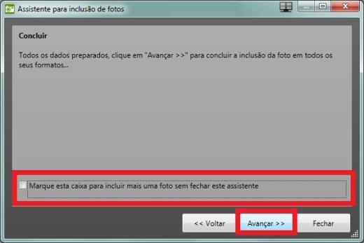 Uma tela com as opções da foto aparecerá para ser preenchida. Preencha os dados cadastrais da foto e clique em avançar.