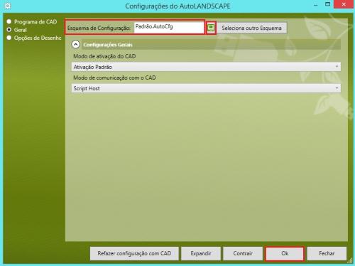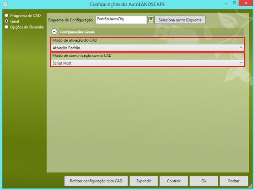 Devemos neste caso usar uma outra opção para a configuração com o CAD está na opção GERAL.