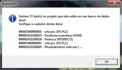 • Categoria: AutoLANDSCAPE | AutoLANDSCAPE 2012 | AutoLANDSCAPE 2012: Erros no AutoLANDSCAPE | AutoLANDSCAPE 2012: Erro item não existe no Banco de Dados