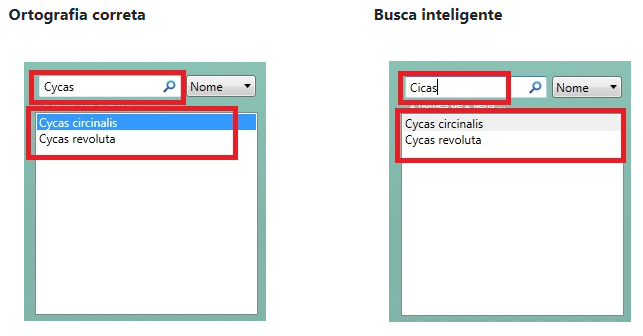 É um tipo de busca parecida com a do Google. Por exemplo, você pode buscar por Cycas ou Cicas que o programa encontra opções com grafia errada.