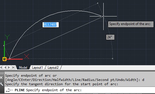A ferramenta Pline, para quem já utiliza o CAD, inicialmente parece criar apenas segmentos de reta, o que não funcionaria para o nosso caso, onde queremos criar formas orgânicas, porém, a ferramenta polígono aceita um segundo comando que faz com que as linhas retas sejam modificadas para curvas. Este comando se chama Arco, e pode se acionado clicando na letra A e pressionando a tecla Enter depois de definir o primeiro ponto da Pline.