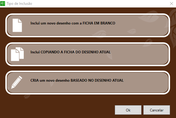 O primeiro passo para fazermos uma inclusão no banco de dados é definir se o que queremos é um novo item ou somente um desenho ou foto nova para um item existente.