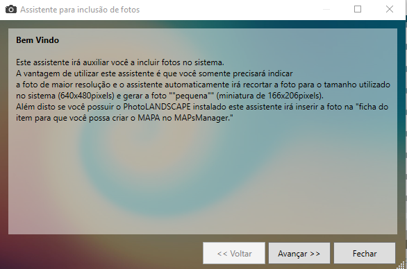 Fique atento as informações que aparecem nas telas, pois elas são muito importantes e vão influenciar na forma que a foto será cadastrada. Neste caso a opção Incluir a foto também como MAPA inclui a foto direto no maps manager para ser editada, porém esta função só é valida para clientes que utilizam o PhotoLANDSCAPE.