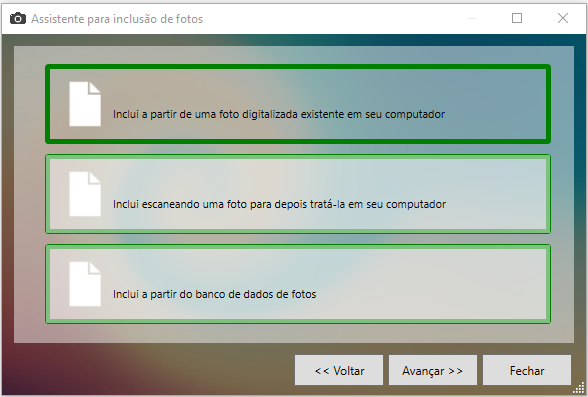 Agora, selecione a primeira opção incluir a partir de uma foto salva no computador.