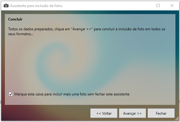 A opção que aparece em seguida é se você deseja manter a caixa aberta para inclusão de novas fotos do mesmo item. Se este item tiver apenas uma foto de identificação, não será necessário deixar esta opção marcada. Clique para finalizar a inclusão da foto.