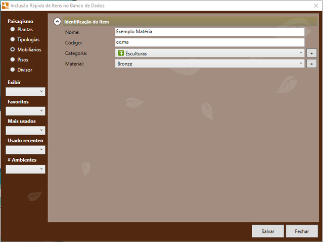 Dependendo da categoria escolhida, os dados a serem preenchidos são diferentes. Neste exemplo vou adicionar um mobiliário.