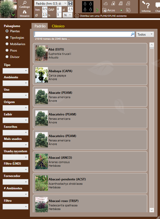 Para selecionar a planta desejada você precisará clicar no botão de seleção de itens que fica ao lado esquerdo da barra.