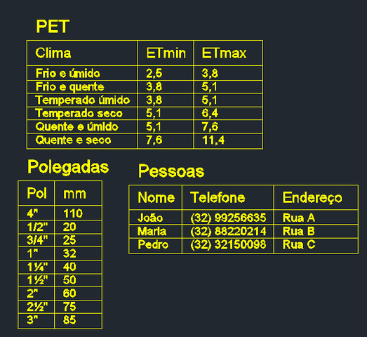 O AutoLANDSCAPE possui uma função que é bem interessante, ele possibilita que o usuário crie tabelas que são inseridas facilmente na tela do CAD.