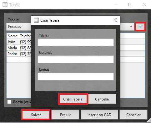 O beneficio mais importante da tela de tabelas é a possibilidade de criar novas, com os dados desejados, e o procedimento para esta criação é bem simples.