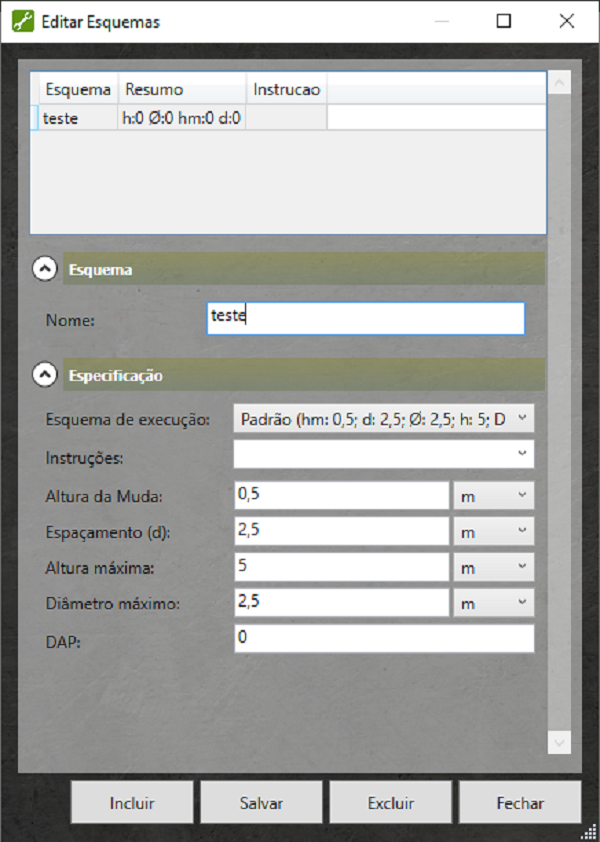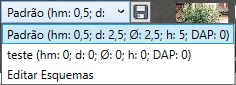 Em seguida vamos inserir um novo esquema para esta palmeira, para que possamos alterar a altura da planta. Para fazer este tipo de inclusão, clique na caixa mostrada abaixo e escolha a opção EDITAR ESQUEMAS.
