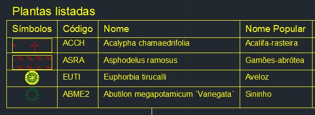 O AutoLANDSCAPE 2022 possui uma opção para a criação de legendas: a legenda tabela. Com isto as legendas passam a ser criadas como uma entidade tabela no CAD.