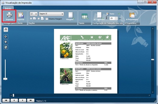 2º Passo – Clique em Imprimir na Tela de Relatório do Sistema AuE Paisagismo;