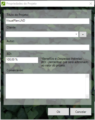 Categoria: CalcLANDSCAPE | CalcLANDSCAPE 2018 | CalcLANDSCAPE 2018: Conheça a tela do programa | CalcLANDSCAPE 2018: Aba Início | CalcLANDSCAPE 2018: Propriedades do Projeto