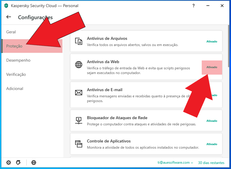 4º Passo – Feito isso, a proteção web deve estar desativada. Certifique-se de desfazer os passos citados acima para reabilitar a proteção após a instalação dos programas da AuE.