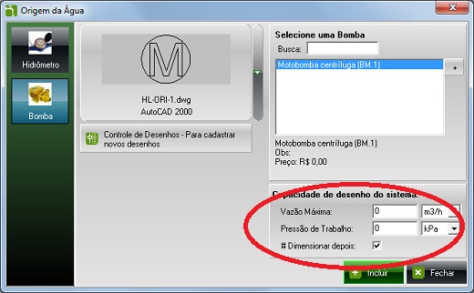 De qualquer forma, tendo valores estimados ou não, o programa irá apresentar os valores necessários ao final do dimensionamento e o projetista poderá consultar o catálogo do fornecedor da bomba para selecionar o melhor modelo.