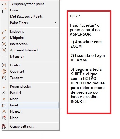 A segunda dica é usar a precisão (OSNAP) INSERT POINT.