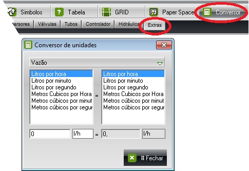 Muitas vezes nos deparamos com a necessidade de convertermos unidades de medida, principalmente na criação de um projeto de irrigação, onde encontramos catálogos que se divergem em suas unidades. O HydroLANDSCAPE tem um completo conversor de unidades, no qual você pode converter Vazão, Pressão, Distancia, Massa, Tempo e muito mais. Para converter uma unidade basta seguir os passos abaixo: