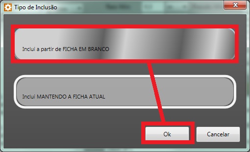 Uma pequena tela aparecerá com duas opções. Selecione a primeira opção: Icluir a partir de uma ficha em branco.