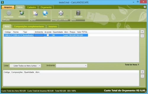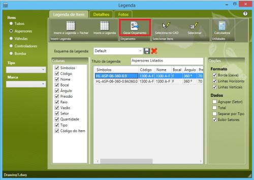 Para quem está habituado ao AutoLANDSCAPE as telas de orçamento dos dois programas também são as mesmas, também é possível mesclar um orçamento de irrigação com paisagismo em um mesmo arquivo. Além disto, quem instala o HydroLANDSCAPE leva também o LandCATALOG, que também é distribuído junto ao AutoLANDSCAPE e permite a criação e edição de orçamentos sem a necessidade de um desenho prévio.