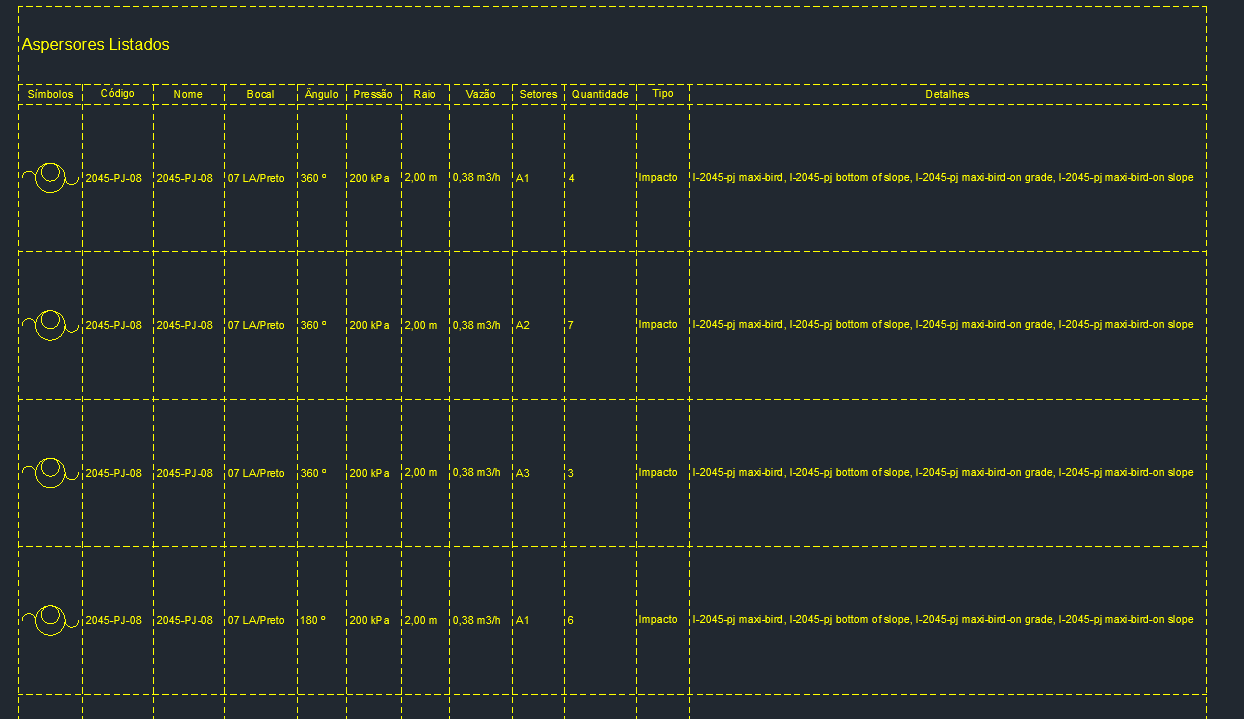 Para incluir a legenda de itens utilizados no projeto, clique na opção Tabela no menu do HydroLANDSCAPE e selecione a área do projeto ou os itens que aparecerão na legenda e aperte ENTER.