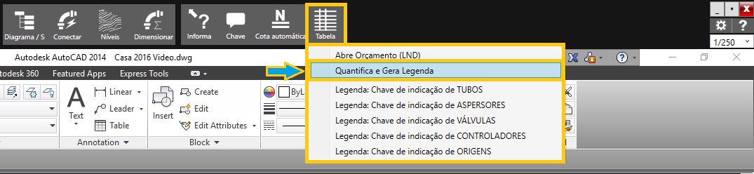 Após de configurar o tipo de tabela e modo exibição da legenda, basta realizar o procedimento padrão para inserir tabela quantitativa no projeto. Para relembrar esta função iremos rever um passo a passo de como inserir tabela no AutoCAD.