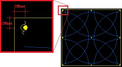 O valor de Offset define a distância que os aspersores serão desenhados fora da borda do polígono. Este afastamento é útil para que os aspersores não sejam desenhados sobre paredes ou muros e para que a linha das tubulações não fique sobreposta a linha da borda de um canteiro, dificultando sua visualização.