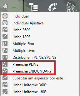 O HydroLANDSCAPE possui várias opções para inserção dos aspersores no projeto, uma opção bastante interessante é o preenchimento automático.