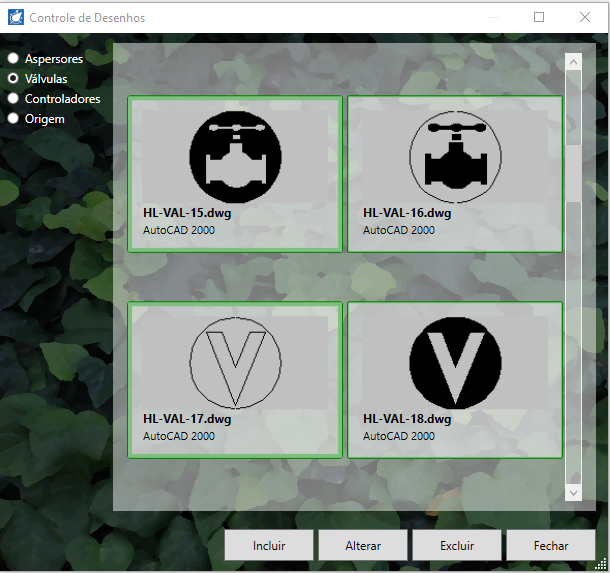 Este procedimento pode ser configurado para aspersores, válvulas, controladores e bomba. Em cada uma das abas correspondentes ao item selecionado, há um botão Configurar Desenho, basta clicar neste botão e selecionar o símbolo.