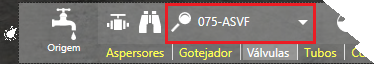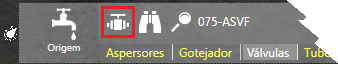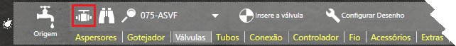 A aba de Válvulas está disponível ao lado da aba de Gotejadores: