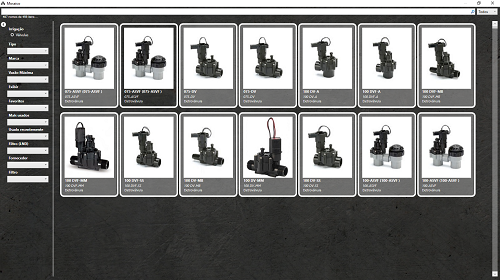 Catálogo de Itens - Através do catálogo é possível selecionar os itens por nome, tipo ou marca (toro, rainbird ou hunter).