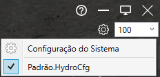 Para fazer a configuração das hachuras no HydroLANDSCAPE 2016 basta clicar no botão de configuração, a direita da barra do HydroLANDSCAPE e clicar na opção Configuração do Sistema.