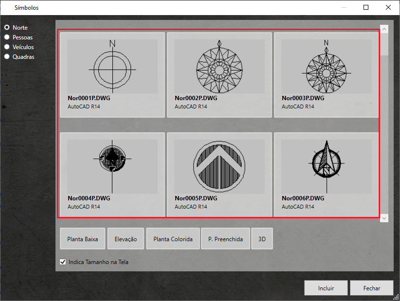 O HydroLANDSCAPE possui um banco de dados de símbolos que facilitam o desenho do projeto e o deixa mais completo. É composto por blocos de direcionamento e localização geográfica, pessoas, veículos e quadras / campos esportivos. Com a utilização desses símbolos você ganha tempo no desenvolvimento arquitetônico e representativo do projeto, podendo se concentrar mais na irrigação.