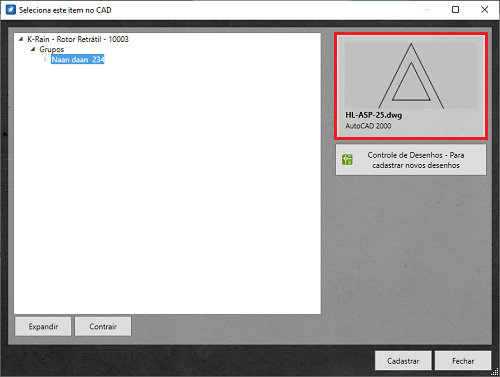 Este procedimento pode ser configurado para aspersores, válvulas, controladores e bomba. Em cada uma das abas correspondentes ao item selecionado, há um botão Configurar Desenho, basta clicar neste botão e selecionar o símbolo.