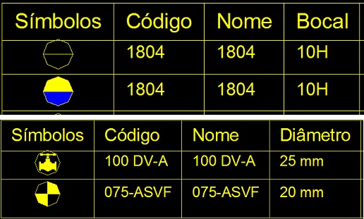 Ao termino do projeto, o projetista pode gerar a legenda com os itens utilizados no projeto. Realizando a configuração e selecionando símbolos diferentes para os itens, será mais fácil identificar os itens no desenho de CAD.