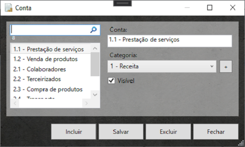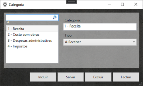 Acesso a tela de cadastro de categorias de contas, as categorias podem ser do tipo a pagar ou a receber.