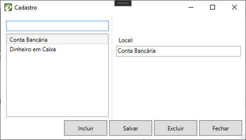 Acesso a tela de localização dos recursos, podem ser por exemplo dinheiro em caixa, ou conta bancaria.