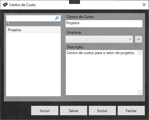 É onde são cadastrados os centros de custos que compõem a empresa. O motivo dessa separação é para que possamos controlar o desempenho financeiro de cada área da empresa separadamente. Como cada centro de custo é responsável por projetos distintos, as receitas ficarão associadas aos centros de custo aos quais pertencem os projetos que as geraram. Você deve ter pelo menos um centro de custo cadastrado para poder criar os projetos.