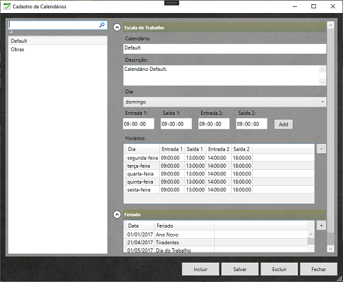 Este é o cadastro de calendário do projeto, ou seja, você deverá incluir os dias e horários de trabalho para o projeto.