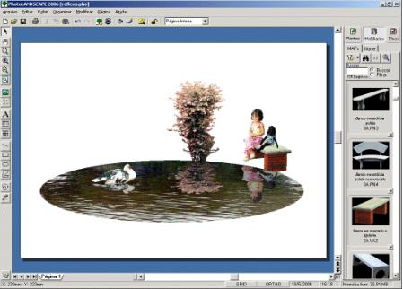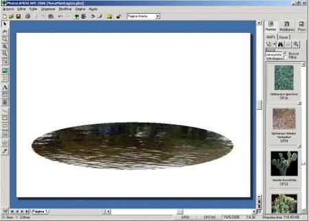 Com a ferramenta elipse, faça um espelho d`água. Para inserir a água, escolha o mapa desejado e insira o mosaico ou limite a figura.