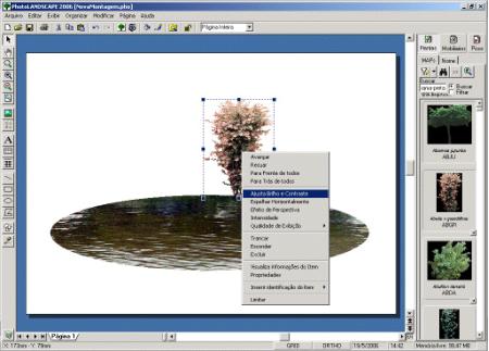 Clique na planta com o botão direito do mouse e escolha a opção Ajusta Brilho e Contraste. Escureça a planta retirando um pouco de seu brilho.