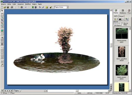 Vamos inserir agora um mapa no meio do espelho d`água. Escolhemos um pato, que fica em Símbolos > Animais. Após inserir o mapa, redimensione-o e ajuste o brilho e contraste.