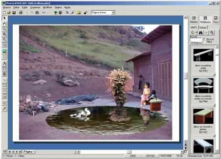 Quando inserimos uma planta ou um objeto perto de um espelho d`água ou piscina, haverá reflexo. Numa fotomontagem, por se tratar de mapas, a água não reflete os objetos que estão ao redor automaticamente, mas existe uma forma de simular esse reflexo, usando um outro mapa como reflexo.