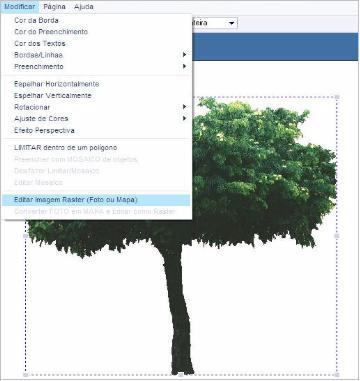 Selecione-o e clique no menu MODIFICAR, escolhendo a opção Editar imagem Raster (Foto ou Mapa).