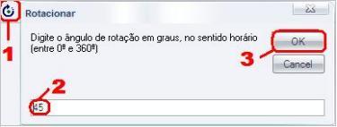 Digite o ângulo desejado 45,90,135,180,225,270,315,360, etc. Com valores positivos foto irá rotacionar no sentido horário, com valores negativos, no anti-horário.