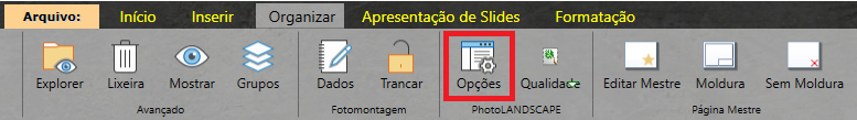 Na Aba Organizar, existe um botão chamado Opções.
