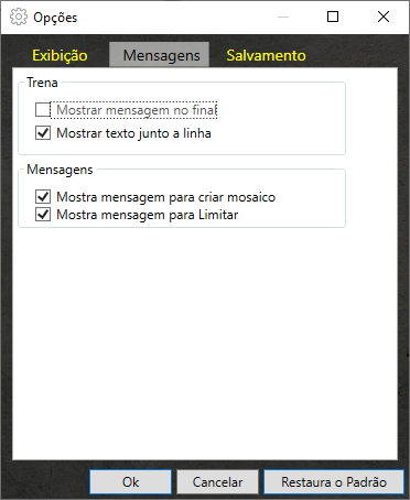 Nas opções Mensagens exibem mensagens para criar mosaico e limitar.
