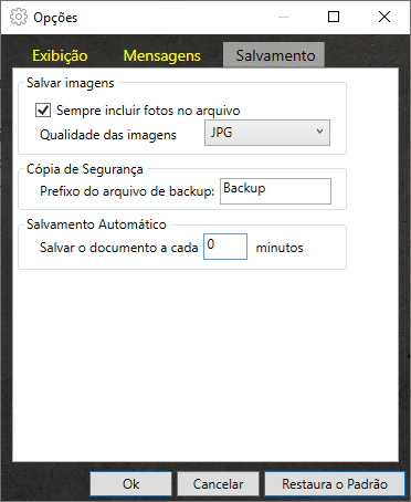 No Salvamento Automático o programa grava o arquivo do projeto a cada passagem de tempo determinada. Por padrão essa opção vem como 0, desligada. Altere o valor da caixa conforme o tempo que achar necessário e ela estará ativada.