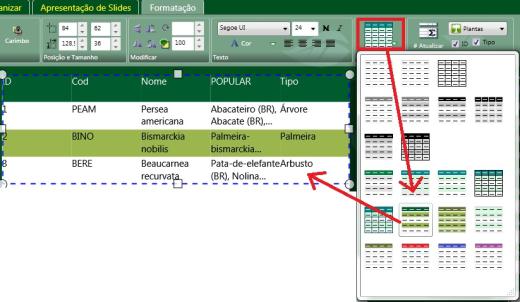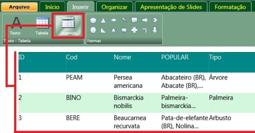 Para fazer ajustes de cor, tipo e tamanho de fonte, linhas marcando as colunas, você deve clicar na aba formatação (com a legenda que foi inserida selecionada), ou dar um duplo-clique em cima da caixa da legenda.